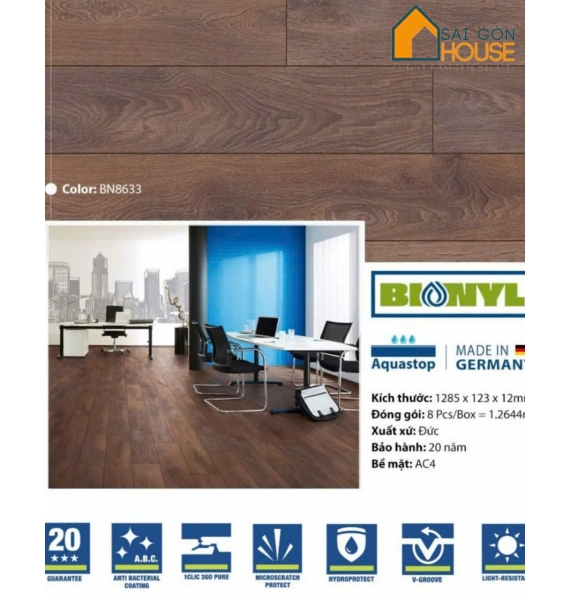 Sàn gỗ Binyl BN8633 (12mm) - Giá Vật Tư: 645.000Vnd/m2