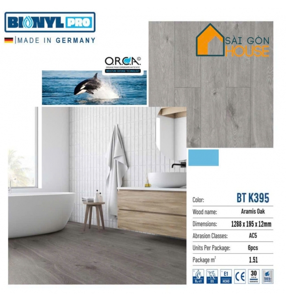 Sàn gỗ Binyl BTK395 (12mm) - Giá Vật Tư: 665.000Vnd/m2