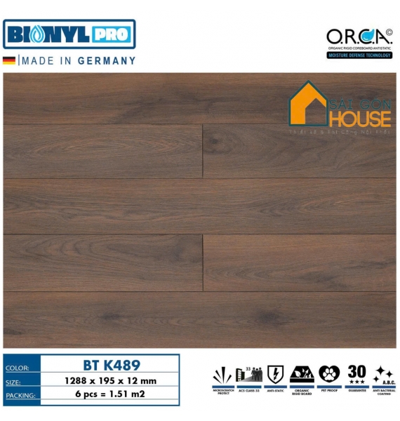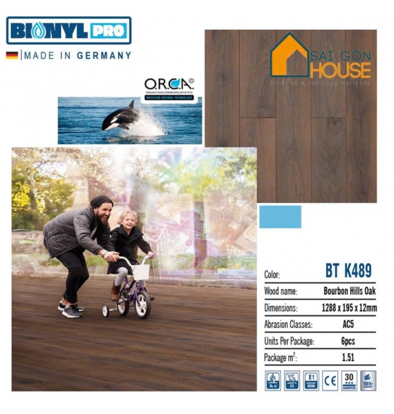 Sàn gỗ Binyl BTK489 (12mm) - Giá Vật Tư: 665.000Vnd/m2