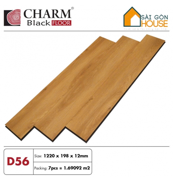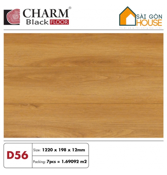 Sàn gỗ Charm Wood (12mm) Cốt đen D56 - Giá Vật Tư: 375.000Vnd/m2
