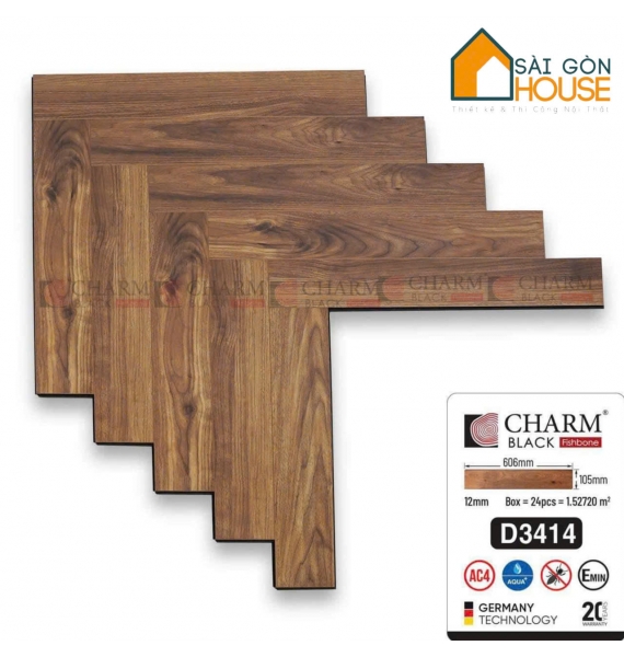 Sàn Gỗ Charm Wood Xương Cá (12mm Cốt Đen) D3414 - Giá Vật Tư: 415.000Vnd/m2