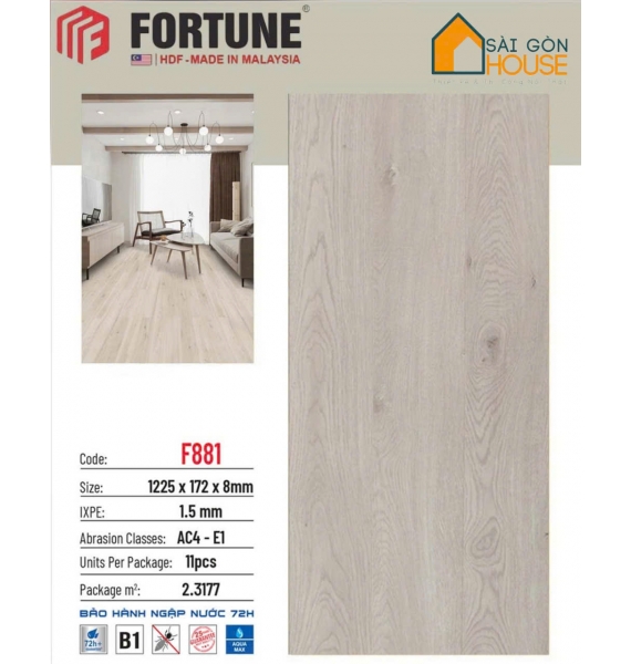 Sàn Gỗ Fortune F881 (8mm) Giá Vật Tư: 315.000 Vnd/m2