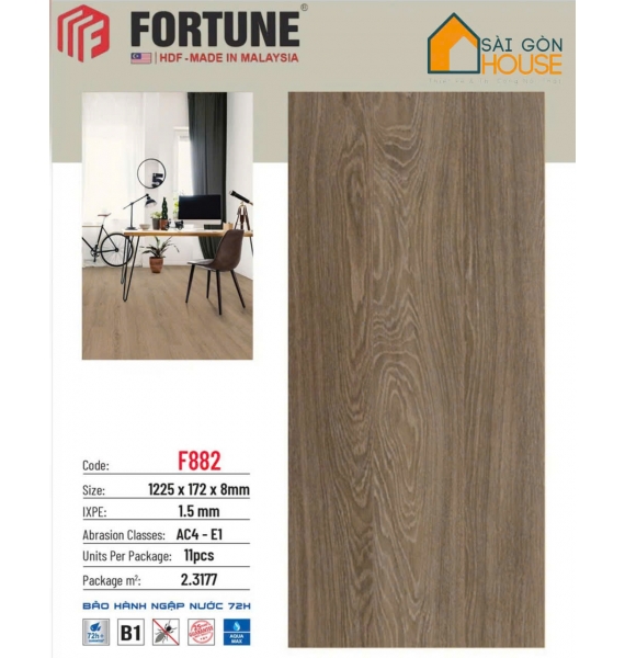 Sàn Gỗ Fortune F882 (8mm) Giá Vật Tư: 315.000 Vnd/m2