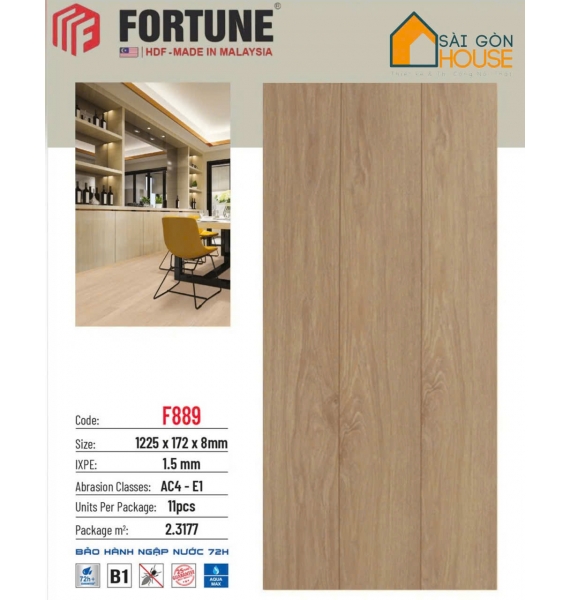 Sàn Gỗ Fortune F889 (8mm) Giá Vật Tư: 315.000 Vnd/m2
