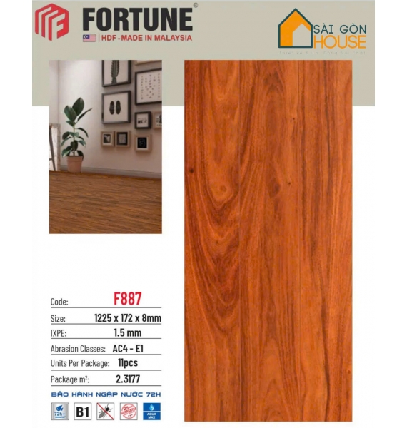 Sàn Gỗ Fortune F887 (8mm) Giá Vật Tư: 315.000 Vnd/m2