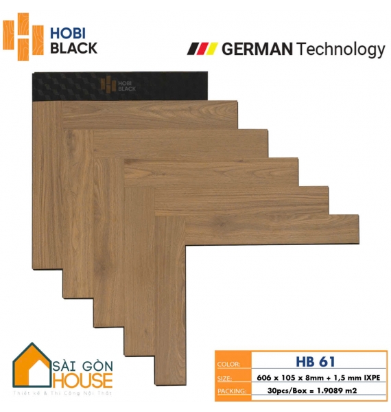 Sàn gỗ Hobi Black xương cá HB61 (8mm) Giá Vật Tư: 365.000 Vnd/m2