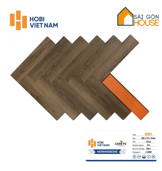 Sàn gỗ công nghiệp Hobi Carb CA993 12mm sản xuất tại Việt Nam. Với cốt HDF và chứng nhận CARB P2 (Hoa Kỳ), Hobi Carb đảm bảo an toàn cho sức khỏe, thân thiện môi trường và bền bỉ vượt trội.
