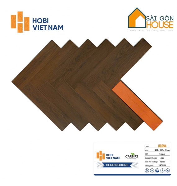 Sàn gỗ công nghiệp Hobi Carb CA993 12mm sản xuất tại Việt Nam. Với cốt HDF và chứng nhận CARB P2 (Hoa Kỳ), Hobi Carb đảm bảo an toàn cho sức khỏe, thân thiện môi trường và bền bỉ vượt trội.