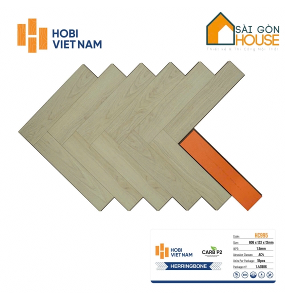Sàn gỗ công nghiệp Hobi Carb CA993 12mm sản xuất tại Việt Nam. Với cốt HDF và chứng nhận CARB P2 (Hoa Kỳ), Hobi Carb đảm bảo an toàn cho sức khỏe, thân thiện môi trường và bền bỉ vượt trội.