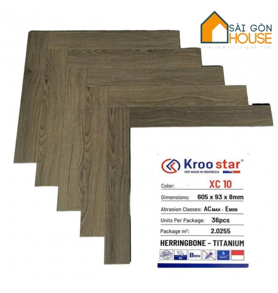 Sàn gỗ Kroo Star xương cá XC10 (8mm) Giá Vật Tư: 350.000 Vnd/m2