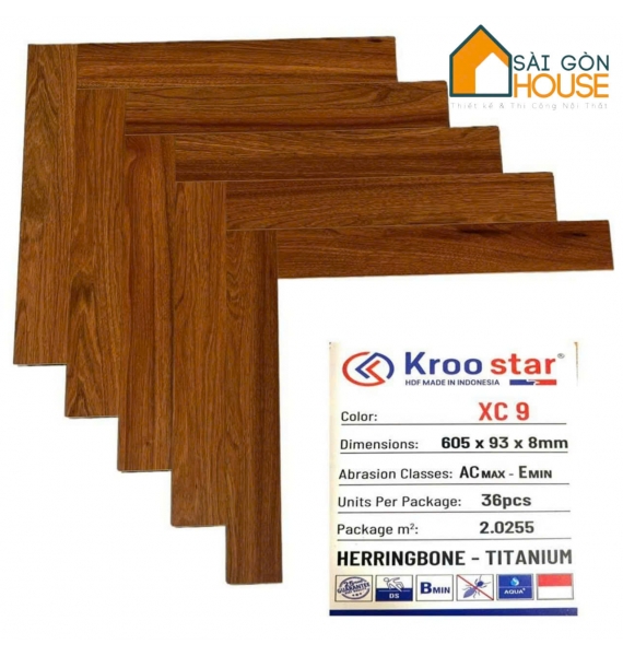Sàn gỗ Kroo Star xương cá XC9 (8mm) Giá Vật Tư: 350.000 Vnd/m2