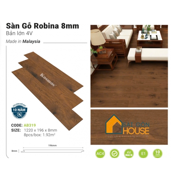 Sàn gỗ Robina AB319 (8mm) - Giá Vật Tư: 369.000 Vnd/m2